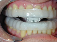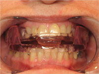 Figure 4. This appliance (SomoDENT [SomnoMED]) is an excellent example of the type of a titratable, durable, mandibular advancement splint that can be used in the treatment of diagnosed sleep apnea when indicated.