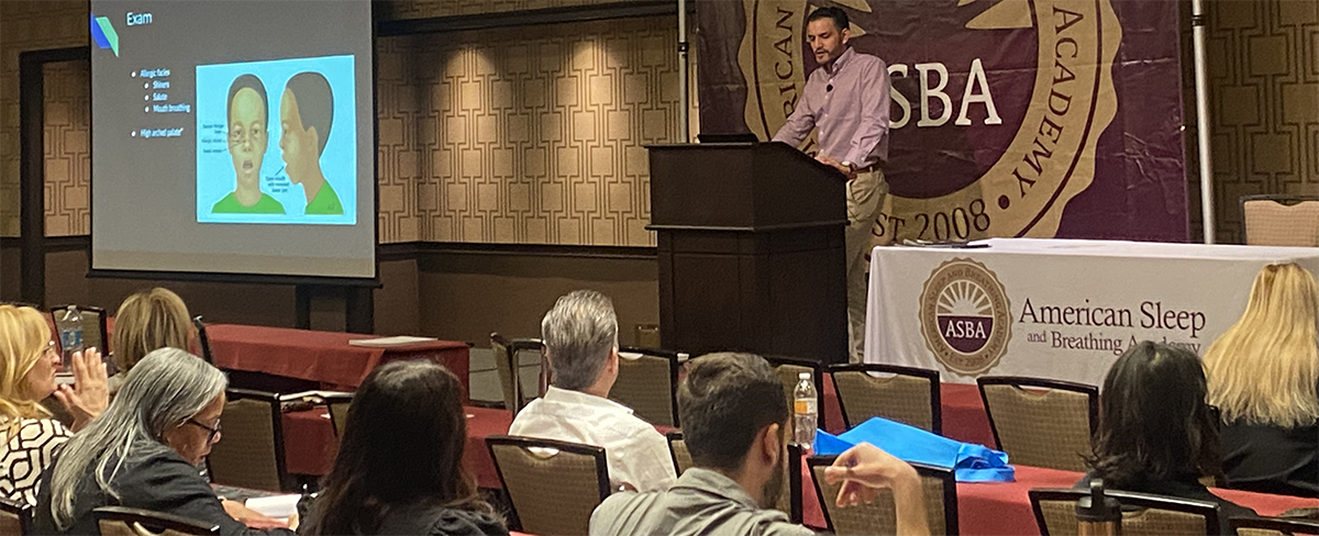 Dr. Andrew Valenzuela presenting on Pediatric Obstructive Sleep Apnea at a recent meeting of American Sleep and Breathing Academy members.
