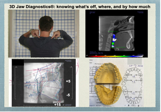 A correctly prescribed oral appliance based on 3D Jaw Diagnostics® method, plus body work and diet change as needed, can do wonders for airway, sleep, headache, back pain, fatigue, and more. This takes significant additional training beyond traditional teeth-centered dentistry.