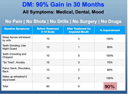 70% was Dr. AR’s gain in 4 months. Can an Impaired Mouth be huge in overall health? Dr. Rich Beistle’s words are worth repeating here: “You see only what you know, hence you can’t diagnose what you don’t know.”