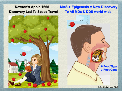 Let’s now focus on the breakthroughs that can come from seeing Impaired Mouth Syndrome and correcting impaired Mouth10-Airway-Sleep-Alignment Axis, leaving diagnostics details to later.