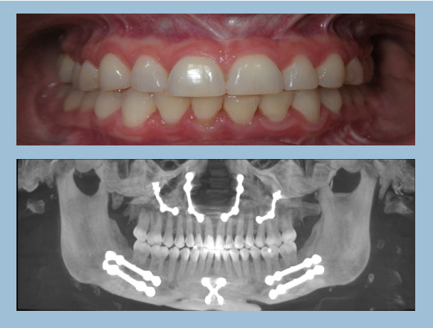 • Nasal and jaw surgery with minimal improvement in her sleep and jaw pain— see the hardware in Figure 9